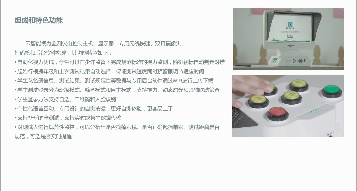 ?自助化視力測(cè)試,學(xué)生可以在少許監(jiān)督下完成規(guī)范標(biāo)準(zhǔn)的視力監(jiān)測(cè),隨機(jī)視標(biāo)自動(dòng)判定對(duì)錯(cuò);