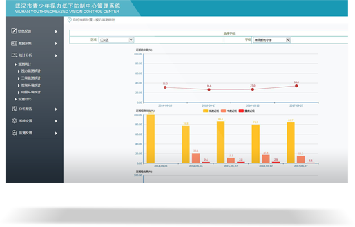 視力健康風(fēng)險監(jiān)測與管理軟件平臺是一個針對群體和個人視力健康相關(guān)信息的管理平臺,通過對學(xué)校-家庭- 專業(yè)服務(wù)機構(gòu)三大場景中遺傳因素、視力健康狀況、影響視力健康危險因素、干預(yù)方案及實施情況 的數(shù)據(jù)采集和統(tǒng)計分析,使學(xué)校群體學(xué)生和家庭孩子更個性化地實施健康干預(yù)和治療。