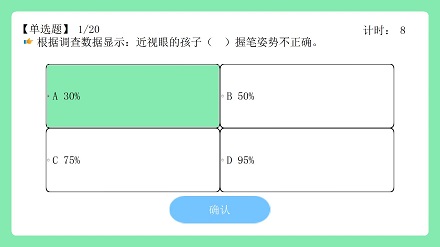 健康教育測(cè)評(píng)機(jī)是集健康教育,健康測(cè)評(píng)于一身的一體機(jī)。與視力健康風(fēng)險(xiǎn)監(jiān)測(cè)與管理軟件平臺(tái)無(wú)縫對(duì)接,通過掃描學(xué)生健康碼自動(dòng)登錄系統(tǒng),學(xué)生通過引導(dǎo)完成健康測(cè)評(píng),系統(tǒng)自動(dòng)匯總分?jǐn)?shù)到后臺(tái),并生成統(tǒng)計(jì)分析報(bào)表,反饋學(xué)校班主任及校長(zhǎng)。
